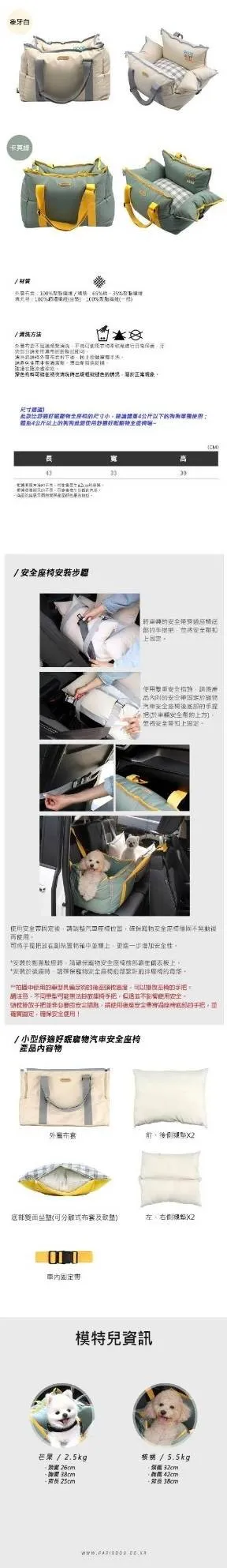 韓國ParisDog-小型舒適好眠寵物汽車安全座椅(適合4kg以下)